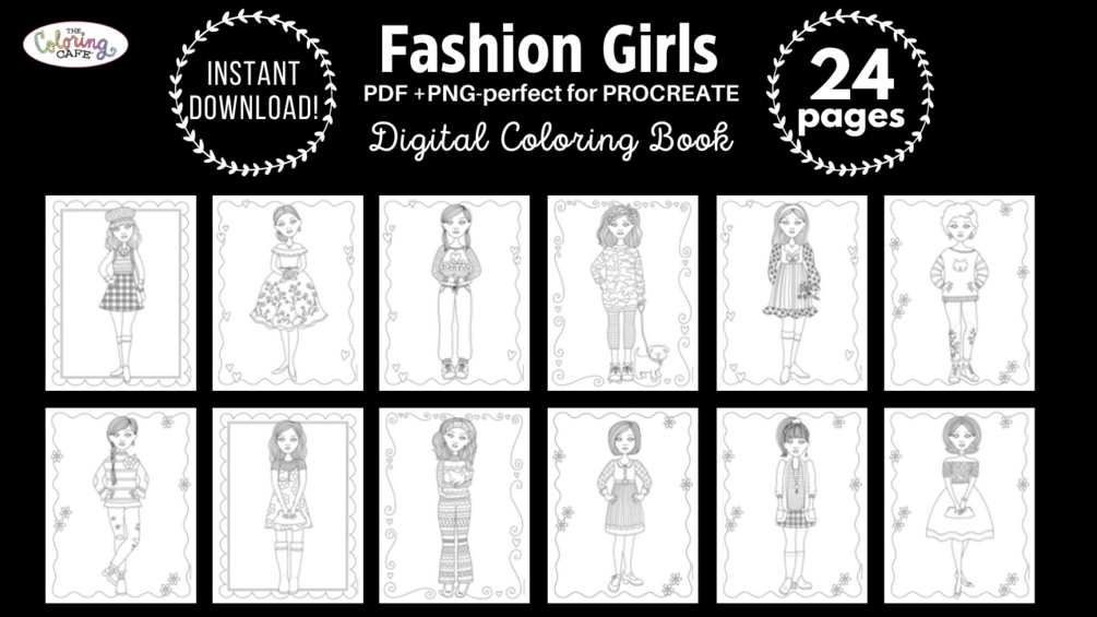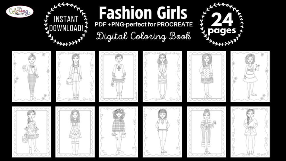 Fashion Girls Digital Coloring Book-24 Page Instant Download to Print and Color or Procreate